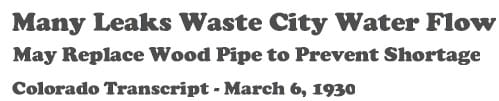 The City had been replacing the old wooden water lines over time, as the budget allowed. By the spring of 1930, all but 3200 feet had been replaced, but the extreme cold weather, followed by thawing, had caused significant failure in the remaining wood pipe:
