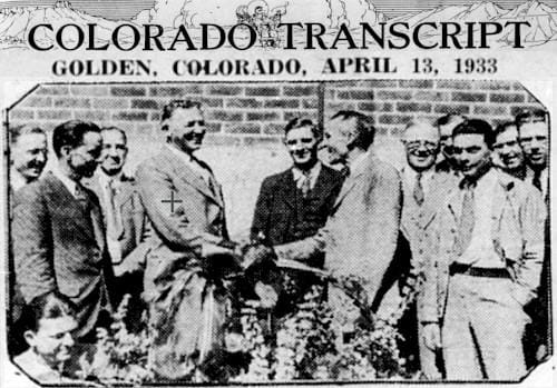 On this date in 1933, the Colorado Transcript reported that Golden Businessmen and Jefferson county officials, numbering more than 100, visited Adolph Coors Jr. in his office last Friday, to show their appreciation for the Coors’ industries and what it has done and is doing for Golden and this community.