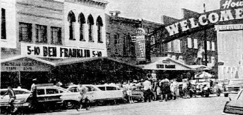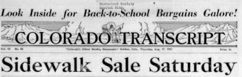 Sidewalk sales are a time-honored tradition in downtown Golden. The first reference I found was 1959–it was part of the festivities associated with Golden’s centennial celebration. Golden had sidewalk sales every year from 1959 through at least 1977–the last year for which Golden Transcripts are available online. Sometimes they were combined with flea markets or art sales.