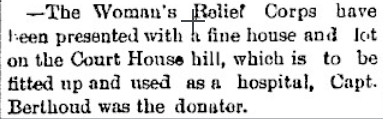 In keeping with her commitments to her church and the W.R.C., Helen proposed a group home for indigent and disabled soldiers and sailors. This goal was fulfilled shortly after Helen’s untimely death at 56 on 2 August 1887, when Ed Berthoud donated a house and lot to establish the Helen Berthoud Hospital to serve as a home for servicemen, who have served in the Civil War. The State took over operation of this home and relocated it. The Home continues today as the Colorado State Veterans Center. Thank you, Helen.