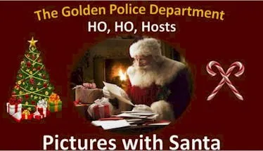 The Golden Police will host Santa Claus from 5-7PM in City Council Chambers. Come meet Police Officers and get your picture taken with Santa! Kids, bring your letters to Santa. Officers will be collecting letters and making sure Santa receives them.