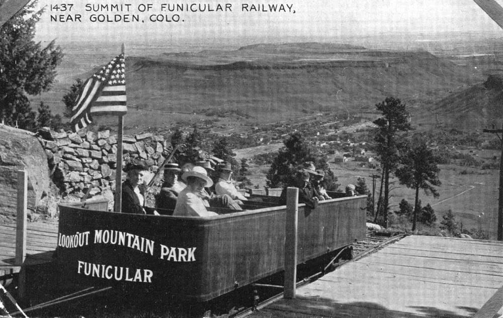 A year later (1913), Golden resident Bill Williams built the "Lariat Trail" road up Mount Zion and Lookout Mountain. Cars soon provided sharp competition to the railway, which went bankrupt within a few years.
