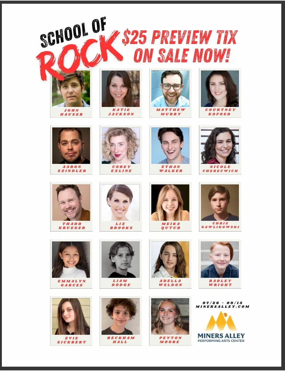 You can see the preview performances of School of Rock at Miners Alley for only $25 this Wednesday (the 24th) and Thursday (the 25th).