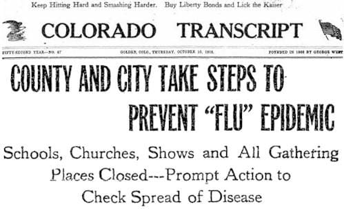 The October 10, 1918 Colorado Transcript announced a series of public health regulations to guard against the Spanish Influenza epidemic.