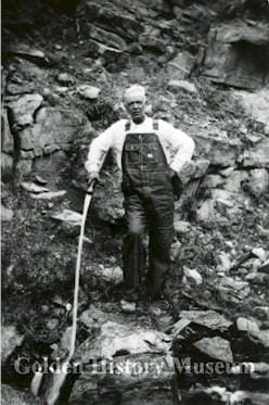 The Church Ditch, begun as the Golden City & Ralston Creek Ditch, has its Clear Creek headgate, still in use today, one-half mile above Hwy 6 and crosses 8th St at the new Base Camp Apartments near the footbridge over Hwy 58. Leased to George Church in 1877, its skirts along the east side of North Table Mountain for 15 miles to Arvada and Westminster. However, its primary agricultural purpose was modified in 1885. At that time serious hydraulic mining by a 50 inch pipe from the Church Ditch near the “residence of Mr. E. Easley” provided a water head of 225 feet strong enough to “power wash” 35 feet to bedrock on Jonas Wannemaker’s farm along Clear Creek.