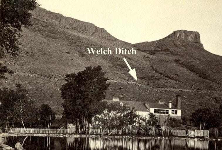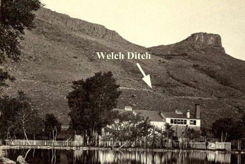 Other ditches followed on both sides of the Creek. Rocky Mountain Ditch (1862), Church Ditch (1864), Welch Ditch (1871) and Agriculture (Ag) Ditch (1874) – all of which–except the Welch Ditch–remain productive today. A couple of these ditches had storied histories.