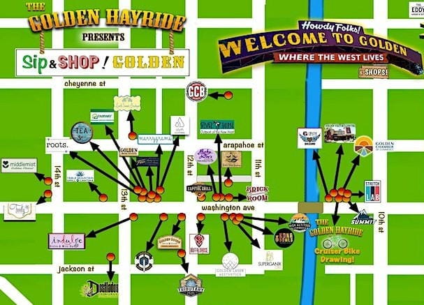 The Golden Hayride, in partnership with the Golden Visitors Center and Golden Chamber of Commerce, is bringing a unique all day shopping experience to downtown Golden on Saturday, May 20, 2023- Sip & Shop Golden!