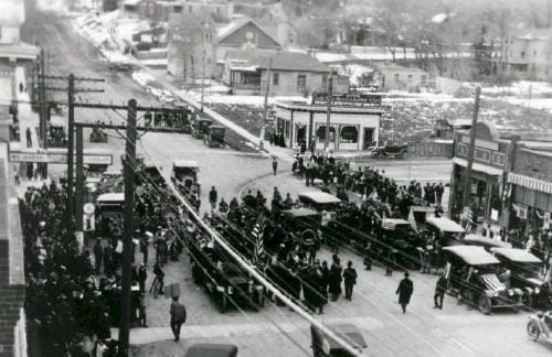 It was constructed in 1911 at the corner of 13th and Washington. The photo above, taken on November 18th, 1918, shows the building at its original spot at the corner.