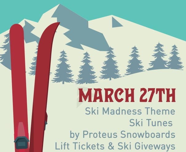 Our theme tonight will be "Ski Madness." DJ Matt Cassady will be playing ski tunes and we'll have lift tickets and ski giveaways.