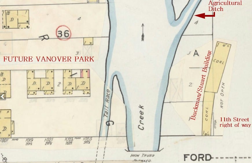 As the range and quantity of his inventory grew, Mr. Stuart needed more space. 11th Street didn’t really extend beyond Ford Street, so he leased the right of way from the City, put a fence across it, and began storing his excess scrap iron and other goodies in that area. In 1954, both the City and Stuart were sued by the Agricultural Ditch and Reservoir Company, who said they needed that right of way to access their headgate and the ditchman’s residence. The lawsuit dragged on for a couple of years, and the city finally suggested to Mr. Stuart that the best way to resolve the issue was to move. I don’t know how the lawsuit was resolved, but Mr. Stuart was still there 27 years later.