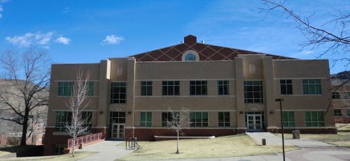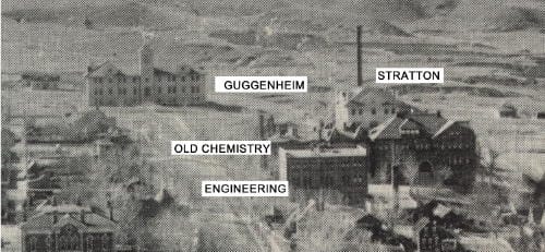 The building that replaced it opened in 1958. It was called “the Metallurgy Building” for several years, until it was officially named “Nathaniel P. Hill Hall” in 1964. Hill (1832-1900) was a founder of the smelting industry in Colorado. He served on the original Board of Trustees for the School of Mines, spent six years in Washington D.C. as a Senator from Colorado, and in later years taught classes at the School of Mines. (Sources: Colorado Transcript and National Mining Hall of Fame website)