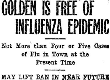 For much of 1918, even as the Influenza pandemic raged around the globe, Golden was dodging the bullet. In December, it seemed our turn had come.