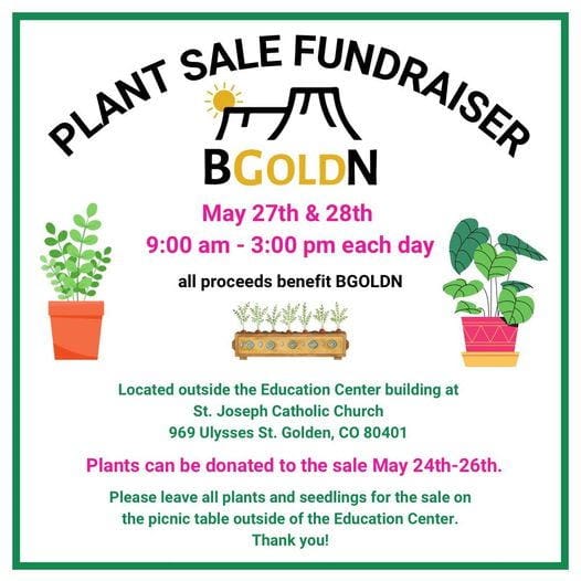 Need plants for your house or garden? The St. Joseph Catholic Church in Golden is holding their annual plant sale to benefit BGOLDN. Stop by today or tomorrow. Thank you to St. Joseph Catholic Church for your continued support!