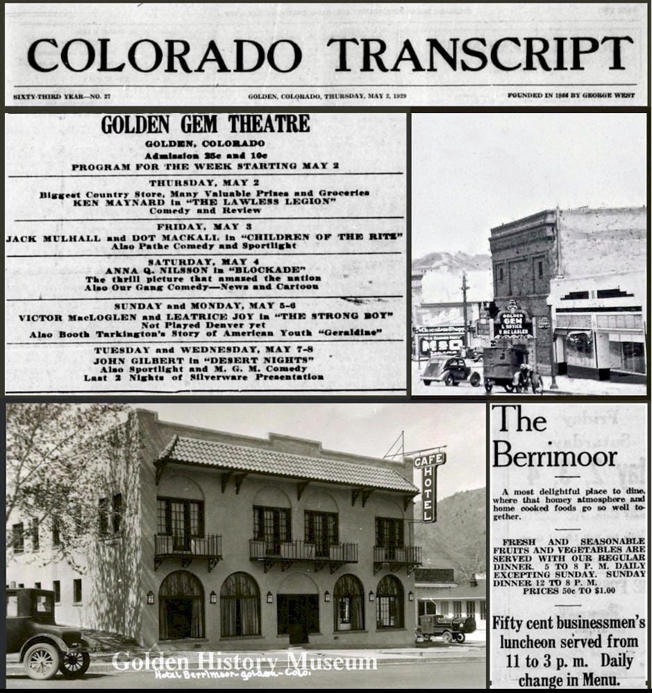 The Golden Gem Theater was located in the building that now houses Starbucks. The Hotel Berrimoor is now the Table Mountain Inn.