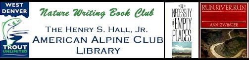 6-7PM Nature Writing Book Club at the American Alpine Club Library in the Mountaineering Center (map) Pack Animal is partnering up with the American Alpine Club Library and the West Denver chapter of Trout Unlimited for a monthly nature writing book club!