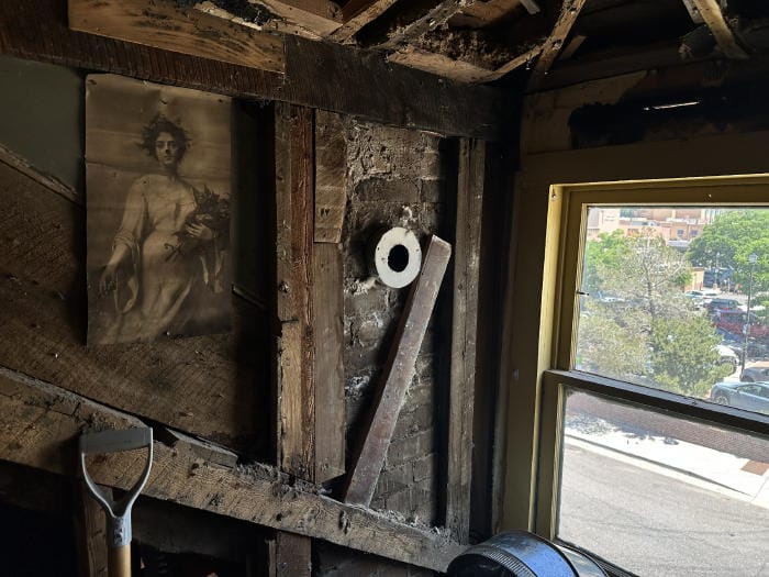 The work in the Astor House is proceeding apace. After a century and a half of continuous use, the building has accumulated a lot of surprises. The construction crew has unearthed pottery sherds, old bottles, snarls of ancient electrical wires, scorch marks from old fires, and inscrutable notes written on boards.