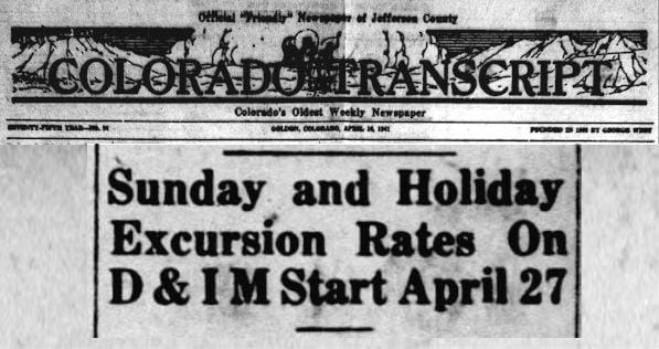 On April 27th, 1941, the Denver and Intermountain Railway began offering low-priced round-trip excursions between Denver and Golden. On Sundays and holidays, passengers could make that trip for only 25 cents. The D&IM had been offering those excursions for several years, and they had proven popular, bringing more than 10,000 visitors each summer.