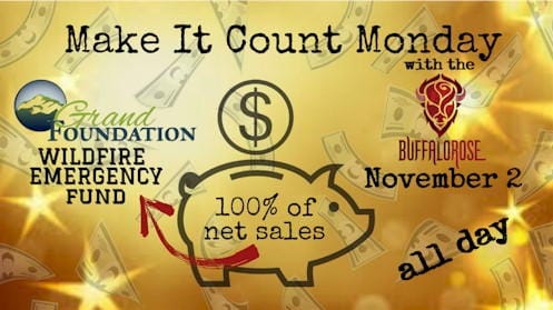 The Buffalo Rose is hosting an all-day fundraiser to support the Grand Foundation Wildfire Emergency Fund. You can dine in or carry out–either way, 100% of their net sales will support victims of the East Troublesome Fire. See the menu.