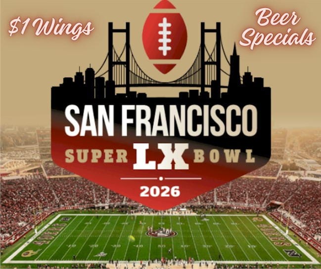 Game on at 4:30 PM. Grab your crew, claim a seat, and settle in for the ultimate game-day hang. Big plays, cold drinks, crave-worthy wings, and all the Super Bowl energy—way better together!