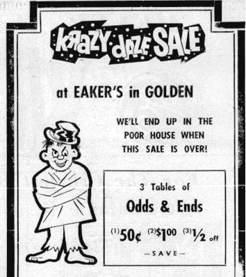 The word “poorhouse” stayed in our lexicon for at least another generation, most often in the context of, “You’re going to drive us to the poorhouse!” The last reference I found of the word “poorhouse” appeared in a 1964 advertisement for Eaker’s Department Store–probably written by someone old enough to remember when poorhouses still existed!