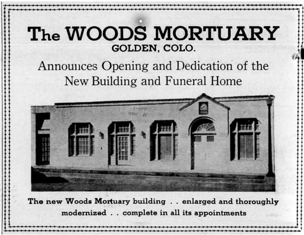 The October 8, 1936 Colorado Transcript announced that Woods Mortuary was expanding. The owner was buying the building next door. The increased space allowed for an enlarged chapel, three new “slumber rooms,” and a bigger sales area (coffins). The second floor was being converted into apartments.