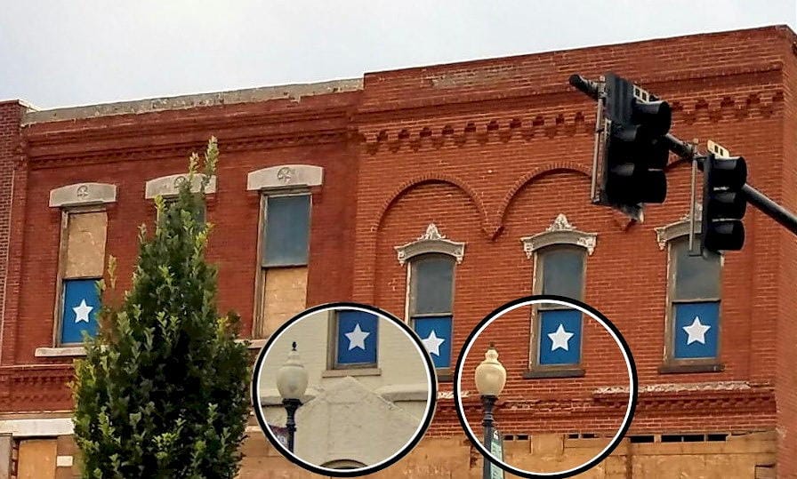 The owner added a common facade at the street level, to unify the look of the buildings. The advertisement above shows only that first floor facade.