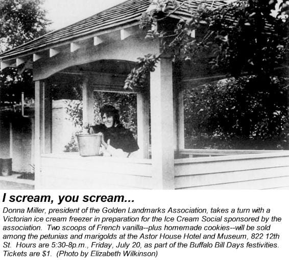 The July 18, 1979 Golden Transcript was promoting events planned for the upcoming Buffalo Bill Days weekend. One of the highlights would be Golden Landmarks Association’s ice cream social, in the back yard of the Astor House. The servers would be based in the gazebo, and chairs and tables were set out to allow people to relax in the garden