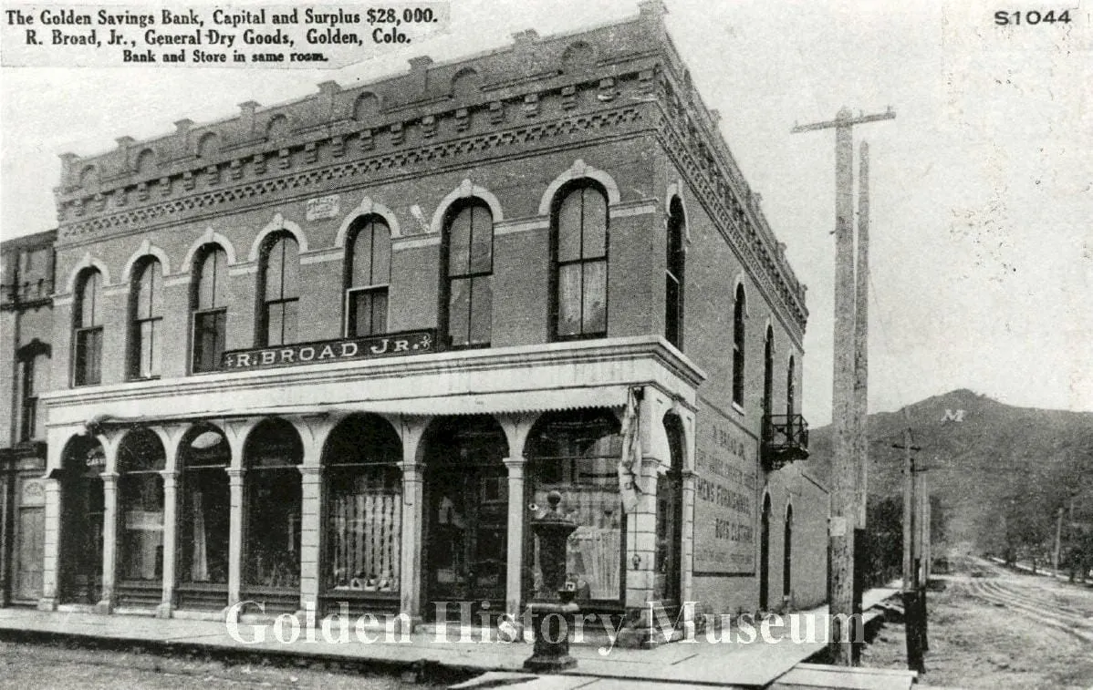 Mr. Broad owned a dry goods store at 12th and Washington from the 1890s into the 1930s. He grew up on a ranch north of Golden. It was a hardscrabble life, and Broad had little formal schooling, but he was well read–so much so that he began his career as a schoolteacher. He embarked on business in Golden and within a few years, owned one of the more prosperous stores in town.