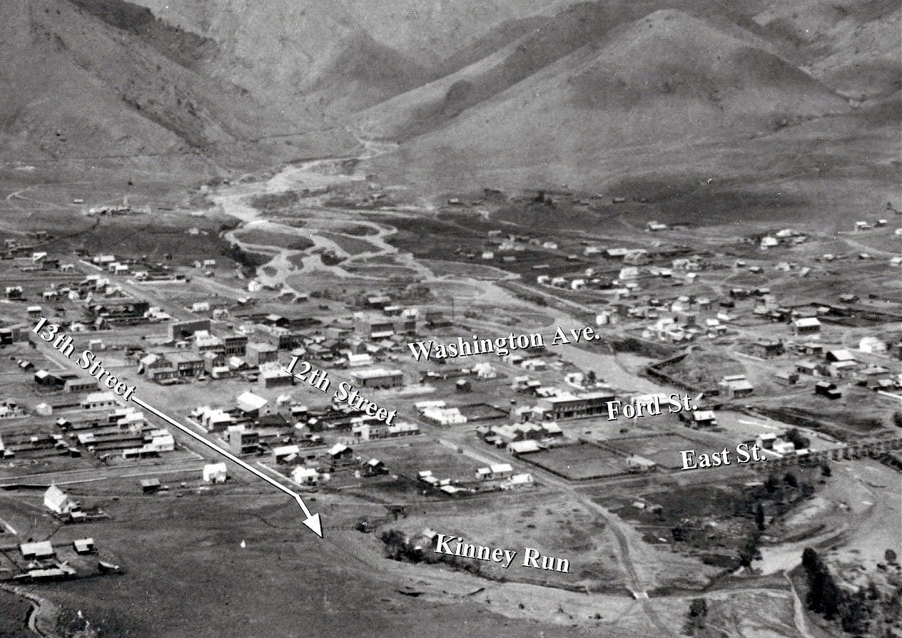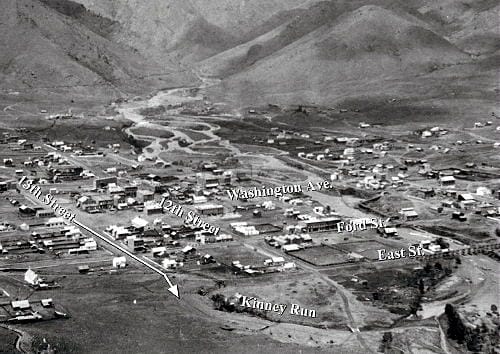 We’ve done a lot of grading over the past 150 years in Golden. In reading very old Transcripts, I often come across references to bridges that we no longer need to cross dips and gulches that we have since bulldozed away. Kinney Run used to create a significant gulch just east of East Street. The terrain has been planed down over time, and more importantly, the waterway itself was “undergrounded” (put in a buried culvert) in 1959.