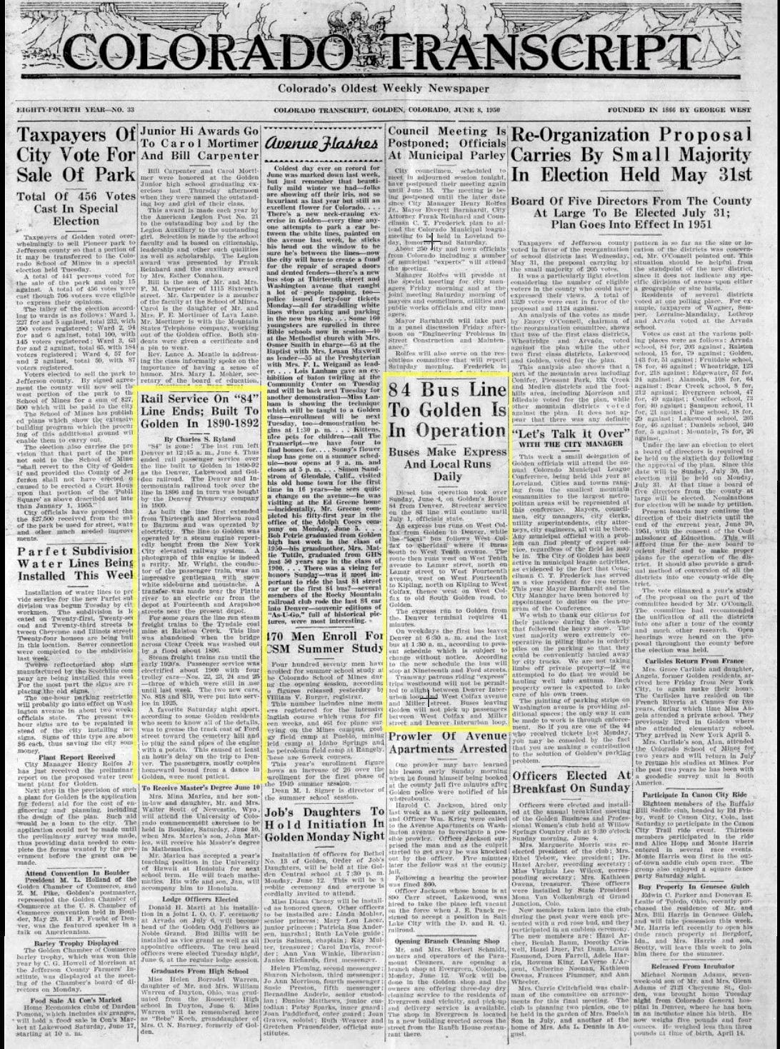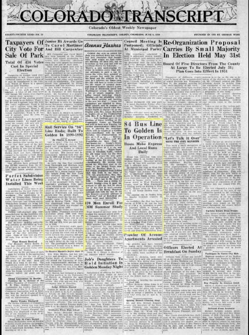 Thanks to the Golden History Museum for providing the online cache of historic Transcripts, and to the Golden Transcript for documenting our history since 1866!