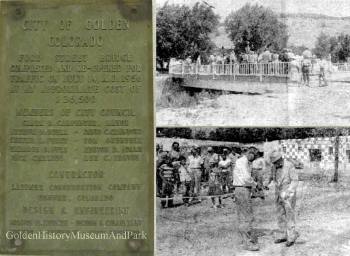 The July 19, 1956 Colorado Transcript celebrated the opening of a new Ford Street bridge. Mayor Carpenter spoke briefly, providing the specifications of the new structure and explaining that it was replacing one built half a century earlier. He mentioned that the new bridge had cost $36,000, then added that “the budget for ’56 is shot.”