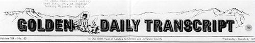 Many thanks to the Golden History Museum for providing the online cache of historic Transcripts, and many thanks to the Golden Transcript for documenting our history since 1866.