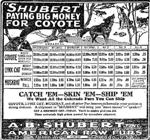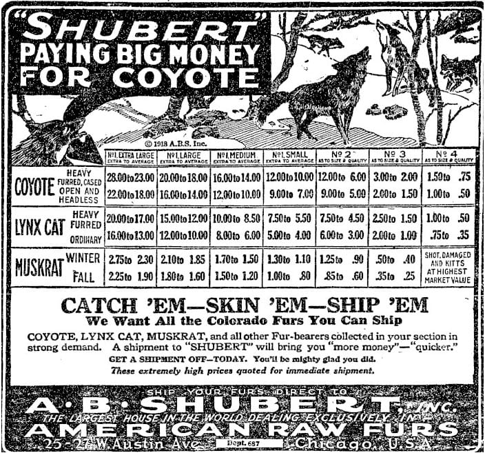 For much of the 20th Century, fur farming was a significant industry in this area. In 1915, the Transcript announced formation of a new company: the Rocky Mountain Fur Farm Company. They planned to set up small farms in several places in the area. They began with 250 skunks, which–as the Transcript pointed out–“multiply with startling rapidity.”
