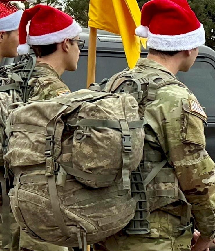 Each soldier carried a heavy pack. Unloading them at the Pantry, they filled three big bins with toys and left 263 pounds of food for hungry Golden residents.