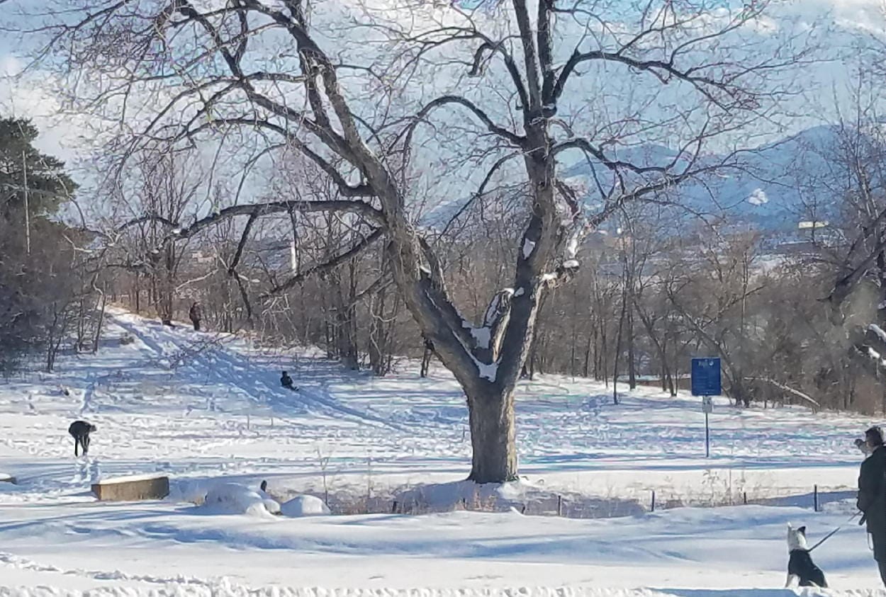 After that, the police chief tried designating certain streets as sledding areas. They began with Cheyenne Street, from 14th to 11th. They tried blocking the cross streets with sawhorses, but found that cars just drove around the barricades.