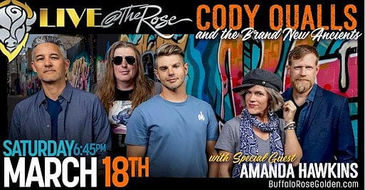 6:45PM Cody Qualis & The Brand New Ancients with special guest Amanda Hawkins @ Buffalo Rose (main venue)
