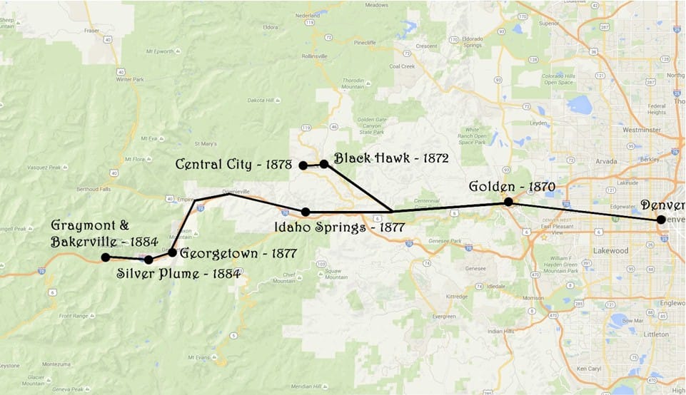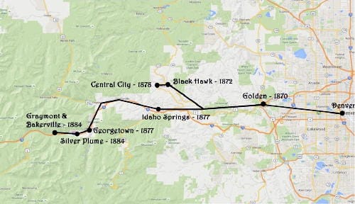 The railroad had been built as far as Black Hawk by 1872, but a nationwide depression from 1873-1878 put a 5 year halt on continued expansion. When the depression finally eased, the Colorado Central quickly finished the lines to Central City, Idaho Springs, and Georgetown.