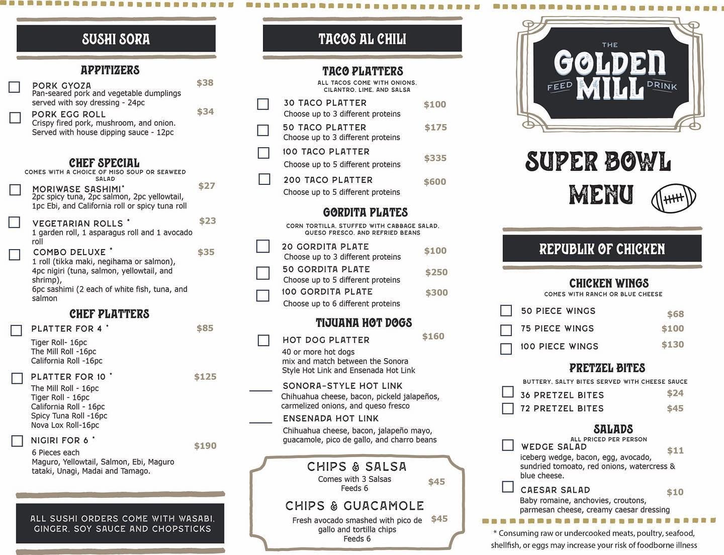 11AM-9PM Special Super Bowl Menu @ The Golden Mill