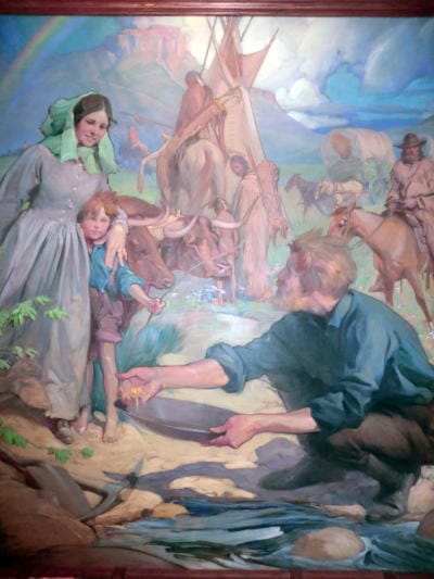 One of the highlights that remains in the building is the mural by Gerald Cassidy, “Dawn of the West,” which can be seen on the second floor. It was commissioned in 1928 by Jesse Rubey in memory of his brother.