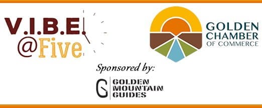 VIBE@FIVE is Golden’s Happy Hour! Come join other members of the Golden Chamber of Commerce for this “Very Important Business Event” – VIBE! This event is for members of the Golden Chamber of Commerce and their guests as well as for members of the Golden Young Professionals. Become a member Stop in for a quick hello and a refreshment right after work and a chance to get to know fellow members of the Golden Chamber of Commerce and Golden Young Professionals. This is a great networking and socializing event.