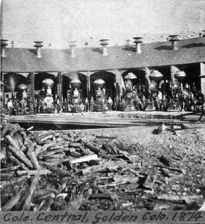 By 1876, Golden was abustle with railroads going north to Longmont, east to Denver and west to Blackhawk and Idaho Springs transporting passengers and freight with the most important freight being coal and sulfide ores for smelters in Golden. All of these railroads from Golden were part of the Colorado Central Railroad (CCRR) run by Bill (WAH) Loveland.