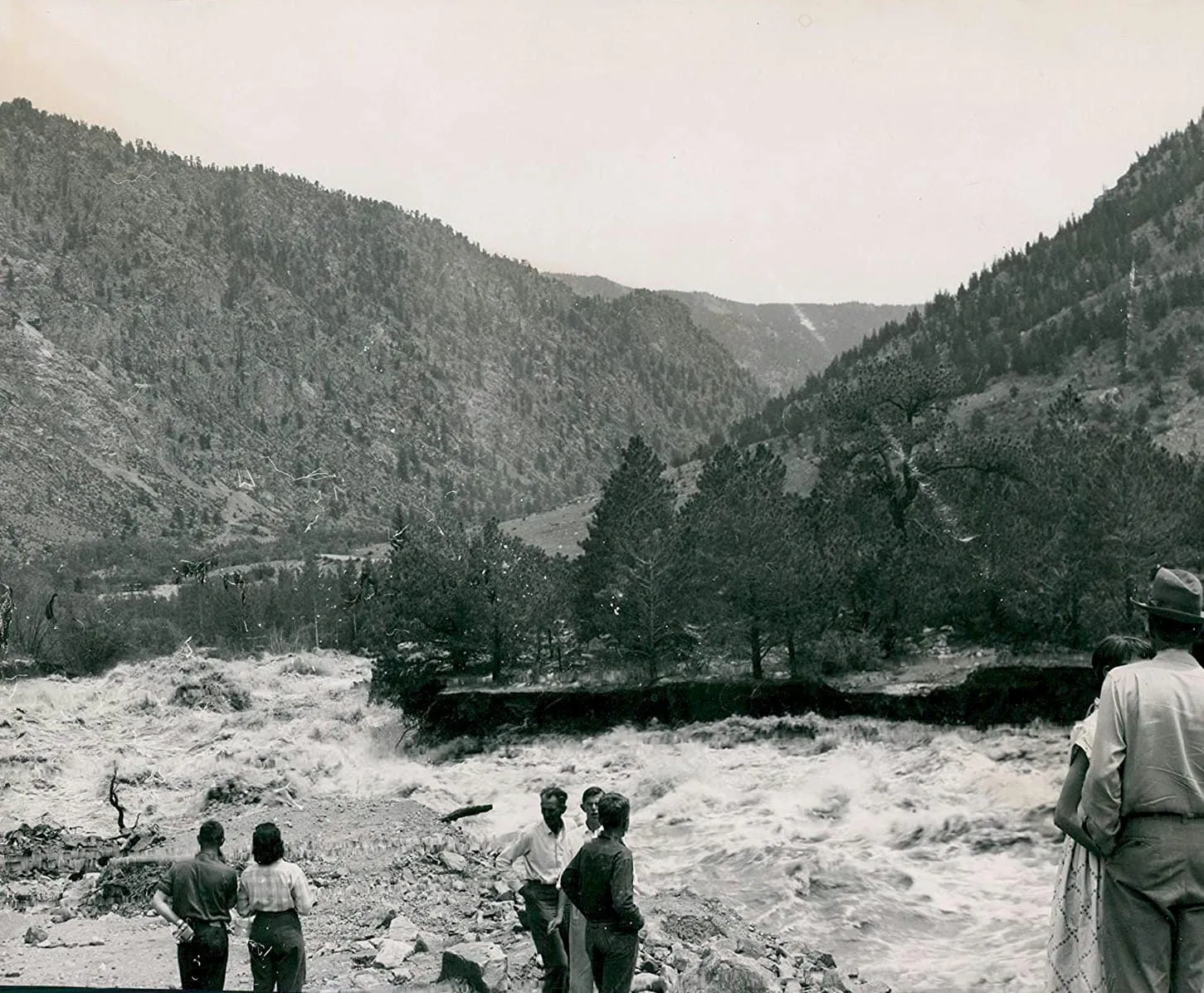 Flood waters roared down Clear Creek canon Monday afternoon after a dam broke below Georgetown when a spillway collapsed. The flood washed out several bridges, sending debris downstream, took out part of Highways 6 and 40 and caused much property damage in Idaho Springs and that area.