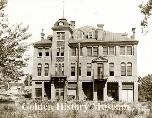 The Bella Vista Hotel, shown in the top-right corner, was built in the early 1880s, with the hope that Golden would become a major railroad hub. It was never a great success, and was torn down in 1920.