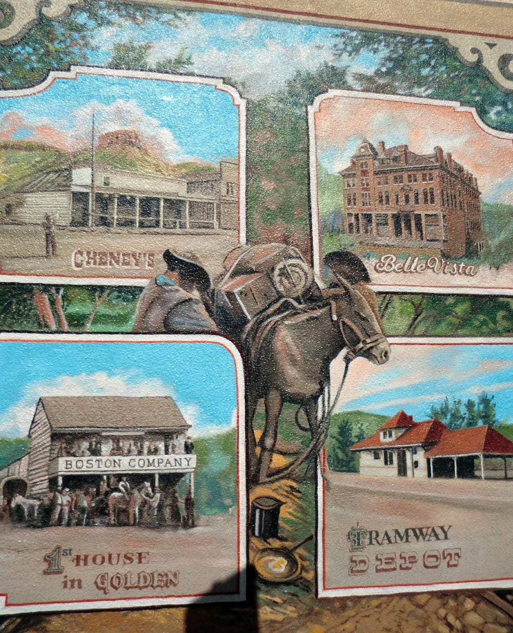 This is part 2 of a walk-through of the Foss mural. Yesterday’s article covered the Buffalo Bill, Coors, and School of Mines panels. Today, I’ll focus on the historic buildings panel. Many of them will be familiar to my regular readers. This review is inspired by the fact that the family is currently having the mural refreshed.