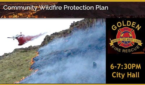City of Golden will host a community-wide meeting to begin community education about the recently updated Community Wildfire Protection Plan in Golden. This meeting will be held in person with options to participate online. The meeting will be led by Golden Fire Chief Jerry Stricker, but members of the City’s Parks, Public Works, Community and Economic Development, Police, and Community Engagement Departments will be present – along with Jefferson County Open Space staff.