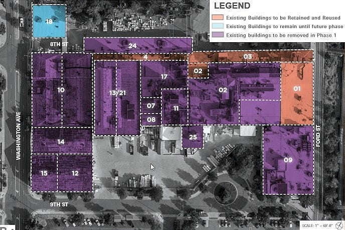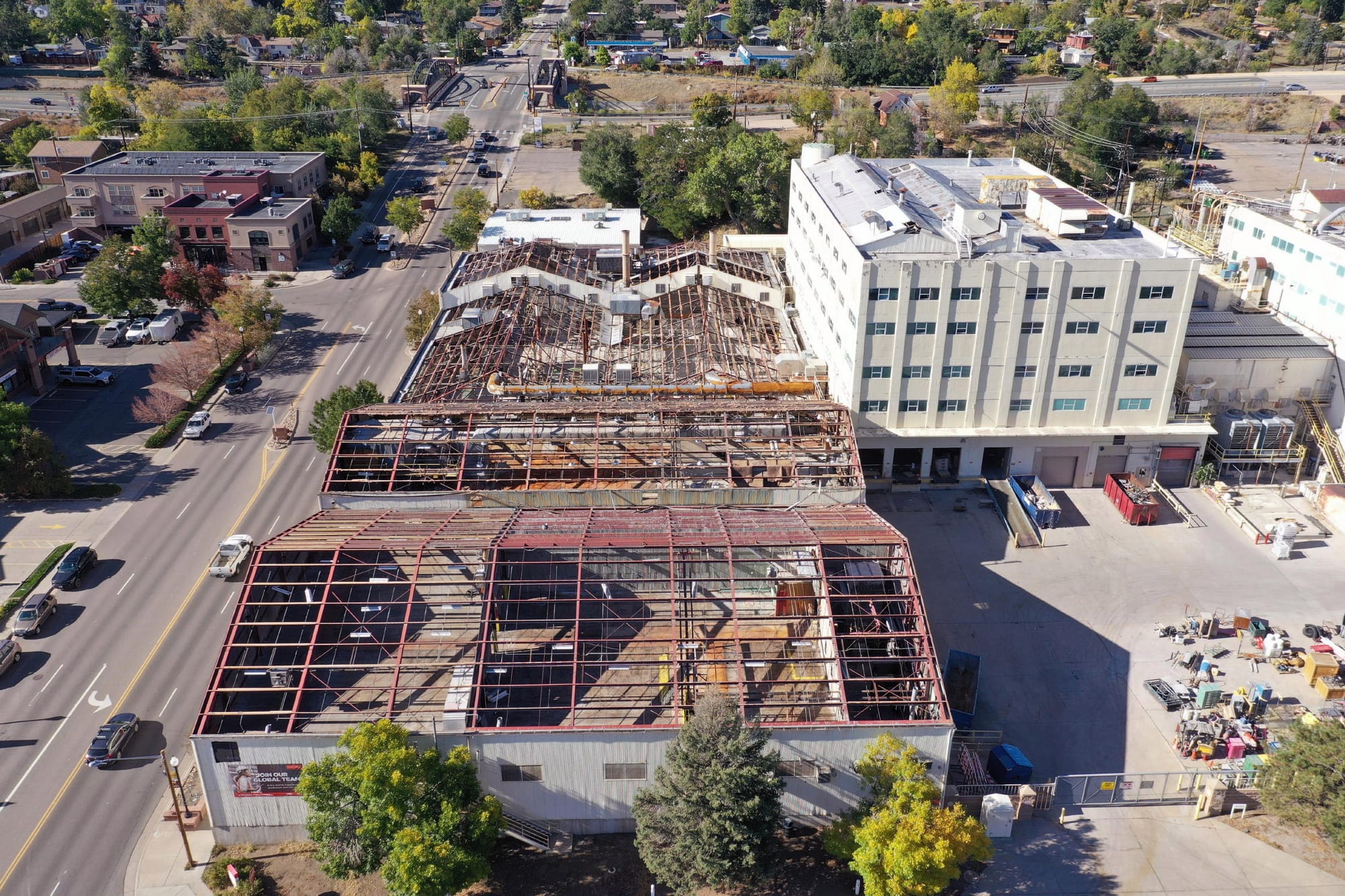 CoorsTek has submitted their request for COA for most of the buildings on their former industrial campus (map). The most visibly historic structure–the long brick wall along Ford Street–will remain.