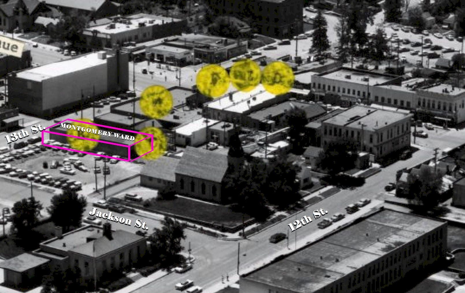 The September 27, 1956 Colorado Transcript reported that the grand opening of the new Montgomery Ward Catalog Store had attracted many patrons. The store was located in a new building on 13th Street, behind the Hested’s Department Store. Cliff Evans owned both buildings, as well as several others in that part of downtown.
